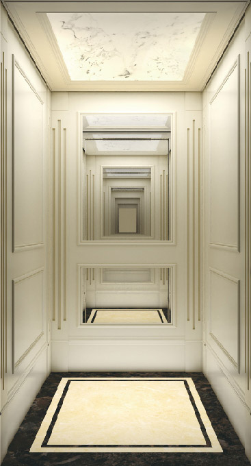 选配 吊顶: (D58063)烤漆木板(象牙白),LED灯,云石板 轿壁: 烤漆木板(象牙白),美容镜 扶手: 无 地板: D62067-D(大理石)/D62067-P(PVC)