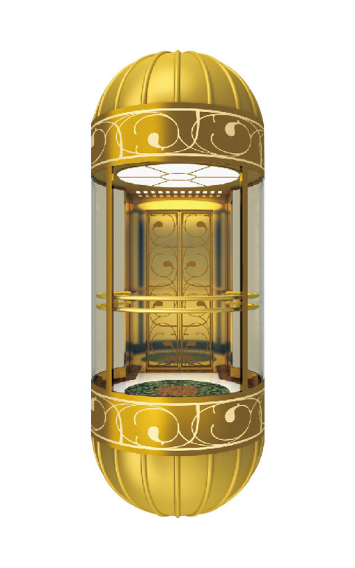 上下罩: 钛金蚀刻,钢板烤漆 观光壁: 夹胶玻璃(钛金镜面不锈钢边框) 装饰顶: 钢板烤漆,亚克力灯饰 轿厢壁: 钛金镜面 扶手: 钛金扶手 地板: PVC(可选配大理石)