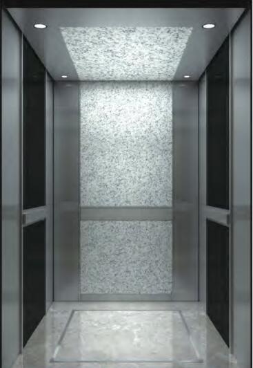 吊顶:发纹不锈钢边框。亚克力透光喷绘,筒灯 轿壁:后壁中间板发纹不锈钢和铝蜂窝大理石,辅助板发纹不锈钢; 侧壁中间板达黑镜面不锈钢,辅助板发纹不锈钢,前壁发纹不锈钢,侧壁和后壁不锈钢压筋 扶手:发纹不锈钢扁扶手 地板:大理石嵌不锈钢