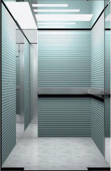 轿壁:镜面不锈钢,木饰面开槽上油漆