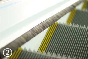 安装于围裙板两侧位于梯级上面的防夹装置,可避免乘客的鞋子碰擦围裙板和能安全有效地防止异物被带入梯级。